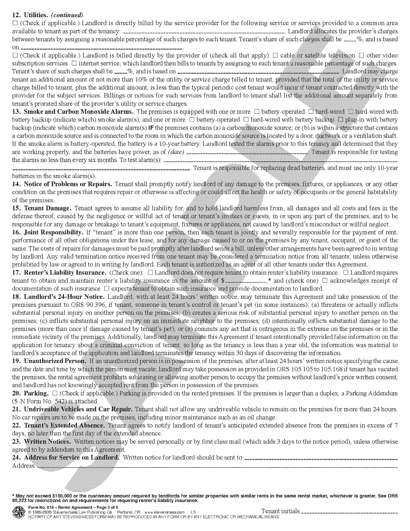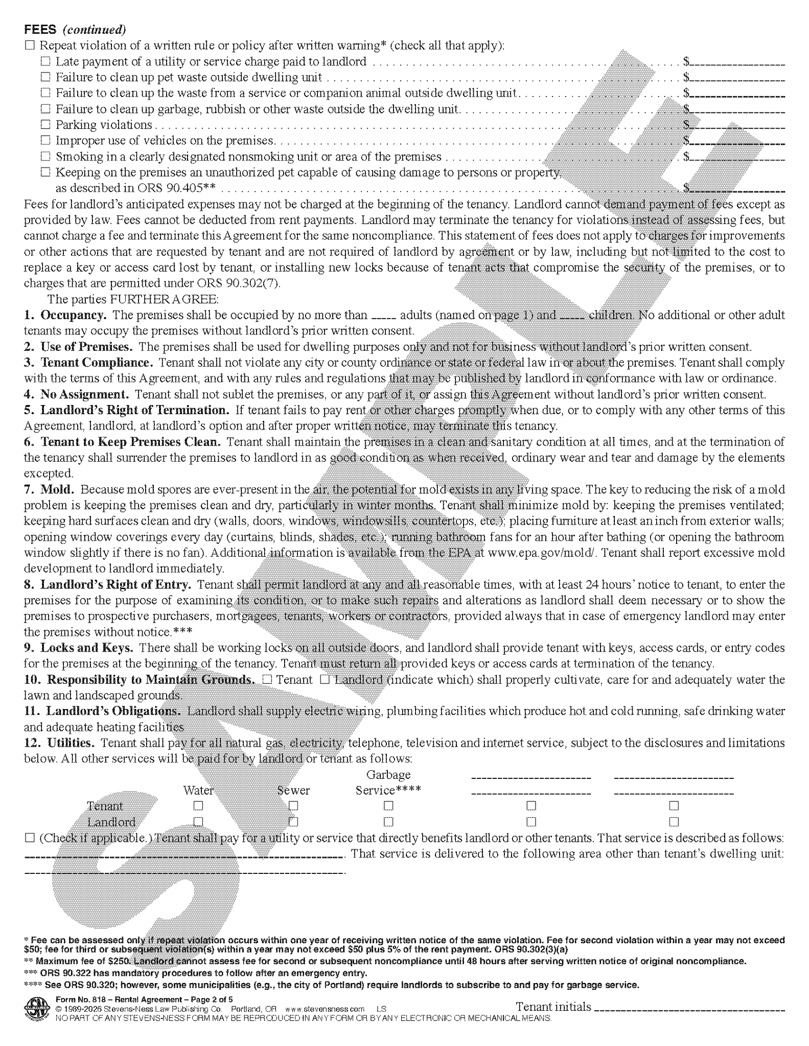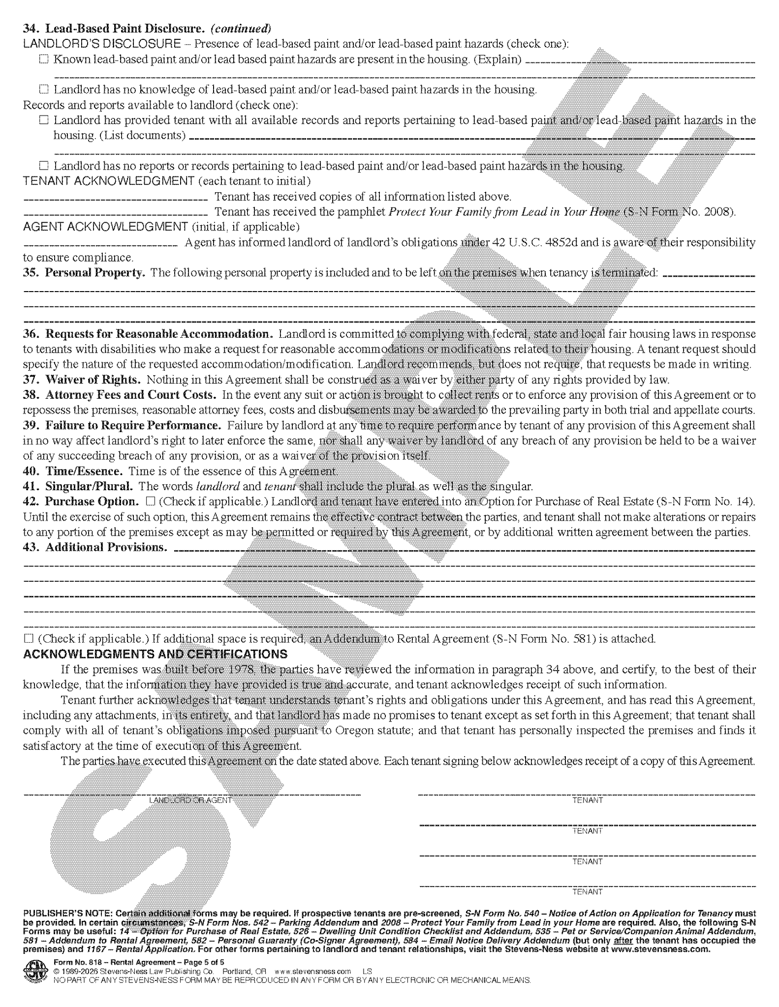 Standard form required for Oregon residential rental. 5 pages.